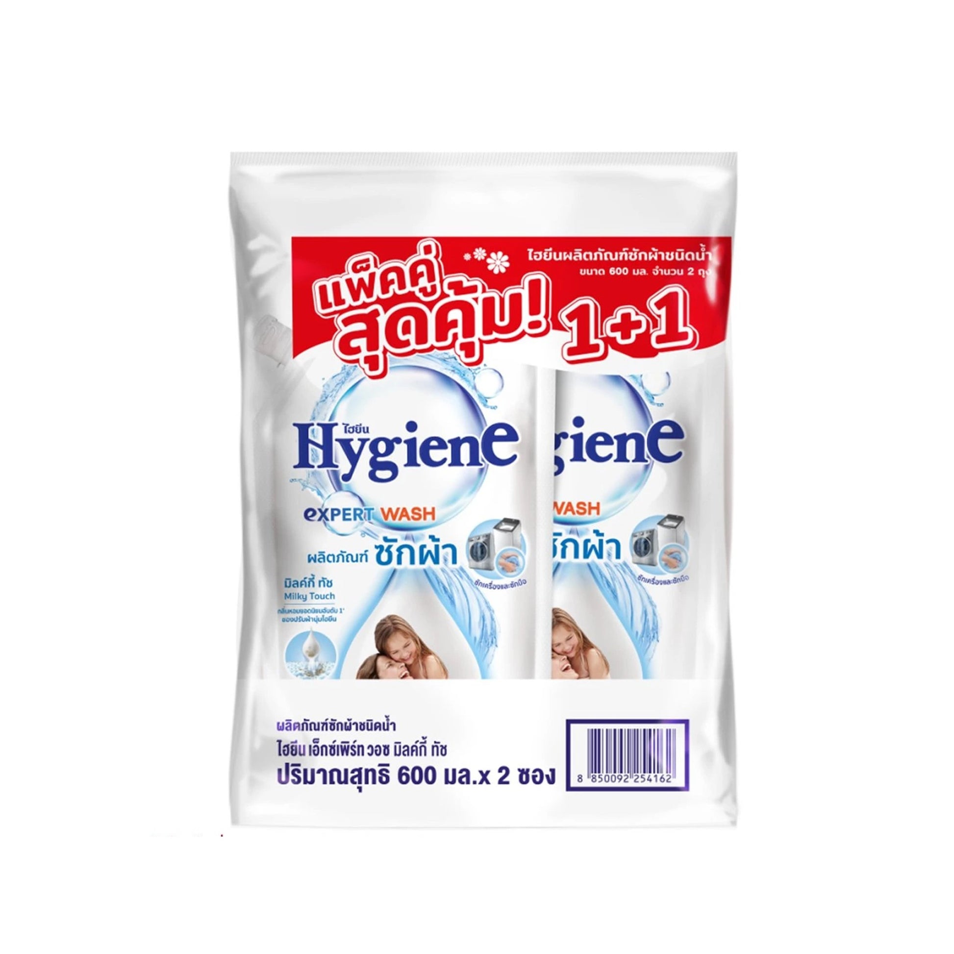 ไฮยีนเอ็กซ์เพิร์ทวอชน้ำยาซักผ้าชนิดน้ำสูตรเข้มข้นกลิ่นมิลค์กี้ทัช 600มล. แพค 2